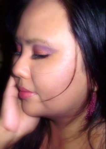 then switch into a smaller brush and take a dark purple eyeshadow.